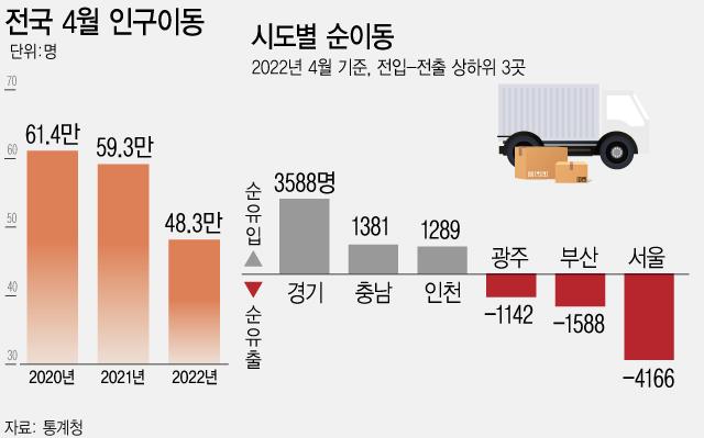 ½Ãµµº° ¼øÀ̵¿(ÀüÀÔ-ÀüÃâ)Àº °æ±â(3588¸í), Ãæ³²(1381¸í), ÀÎõ(1289¸í) µî 8°³ ½Ãµµ´Â ¼øÀ¯ÀÔ, ¼¿ï(-4166¸í), ºÎ»ê(-1588¸í), ±¤ÁÖ(-1142¸í) µî 9°³ ½Ãµµ´Â ¼øÀ¯ÃâµÆ´Ù.