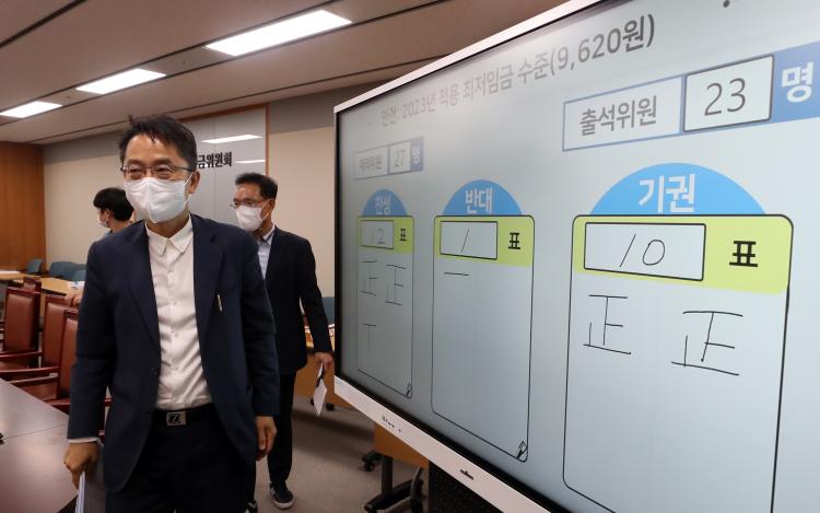2ÀÏ ÃÖÀúÀÓ±Ý ½ÉÀÇ¡¤ÀÇ°á ±â±¸ÀÎ ÃÖÀúÀÓ±ÝÀ§¿øÈ¸(ÃÖÀÓÀ§)¿¡ µû¸£¸é Áö³´Þ 29ÀÏ ¹ã ÃÖÀÓÀ§ Á¦8Â÷ Àü¿øÈ¸ÀÇ¿¡¼ °áÁ¤µÈ ³»³âµµ ÃÖÀúÀÓ±ÝÀº °øÀÍÀ§¿øµéÀÌ Á¦½ÃÇÑ ´ÜÀϾÈÀÎ 9620¿øÀ» Ç¥°á¿¡ ºÎÄ£ °á°ú´Ù.