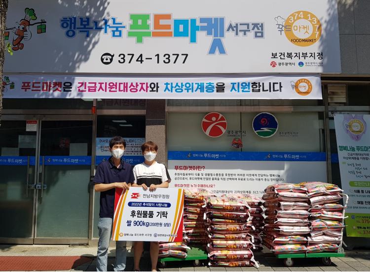 Àü³²Áö¹æ¿ìÁ¤Ã»(ûÀå ¼Û°üÈ£)Àº Ãß¼® ¸íÀýÀ» ¸ÂÀÌÇÏ¿© º¹Áö »ç°¢Áö´ëÀÇ Àú¼ÒµæÃþÀ» Áö¿øÇϱâ À§ÇØ 200¸¸ ¿ø »ó´çÀÇ ½Ò 900kgÀ» Çູ³ª´®Çªµå¸¶ÄÏ ±¤ÁÖ¼±¸Á¡¿¡ ±âŹÇß´Ù°í 7ÀÏ ¹àÇû´Ù.