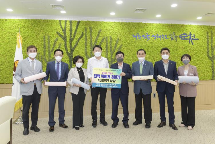 ÇÑÆí ¼øÃµ½Ã´Â Áö³ 7¿ù 1Â÷·Î Æí¹é ¸ñº£°³ 400°³¸¦ ÈÄ¿ø¹Þ¾Æ °æ·Î´ç¿¡ Àü´ÞÇß°í ¾î¸£½Åµé·ÎºÎÅÍ È£ÀÀÀ» ¾ò¾úÀ¸¸ç À̹ø ÈÄ¿øÀ¸·Î ÃÑ 700°³¸¦ Àü´ÞÇß´Ù.