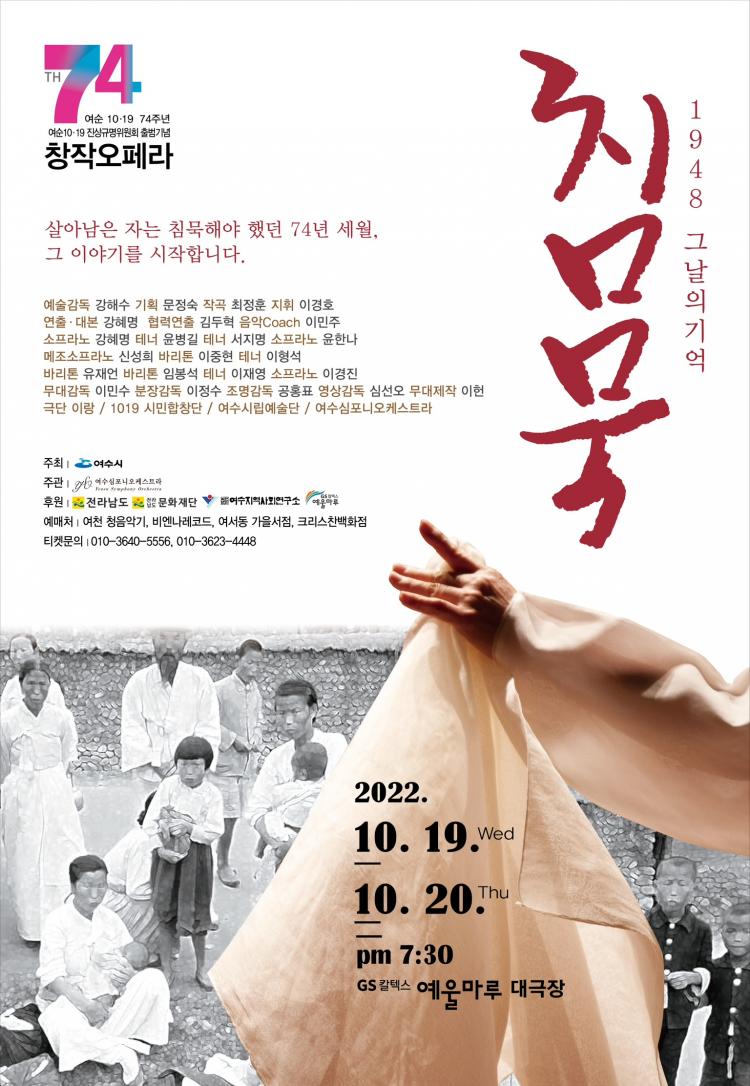 ¿©¼ø»ç°Ç 74³âÀÇ À̾߱⸦ ´ãÀº âÀÛ¿ÀÆä¶ó ¡®1948³â ħ¹¬¡¯ÀÌ ¿À´Â 10¿ù 19Àϰú 20ÀÏ GSĮŨ½º ¿¹¿ï¸¶·ç ´ë±ØÀå¿¡¼ ¸·À» ¿Ã¸°´Ù.