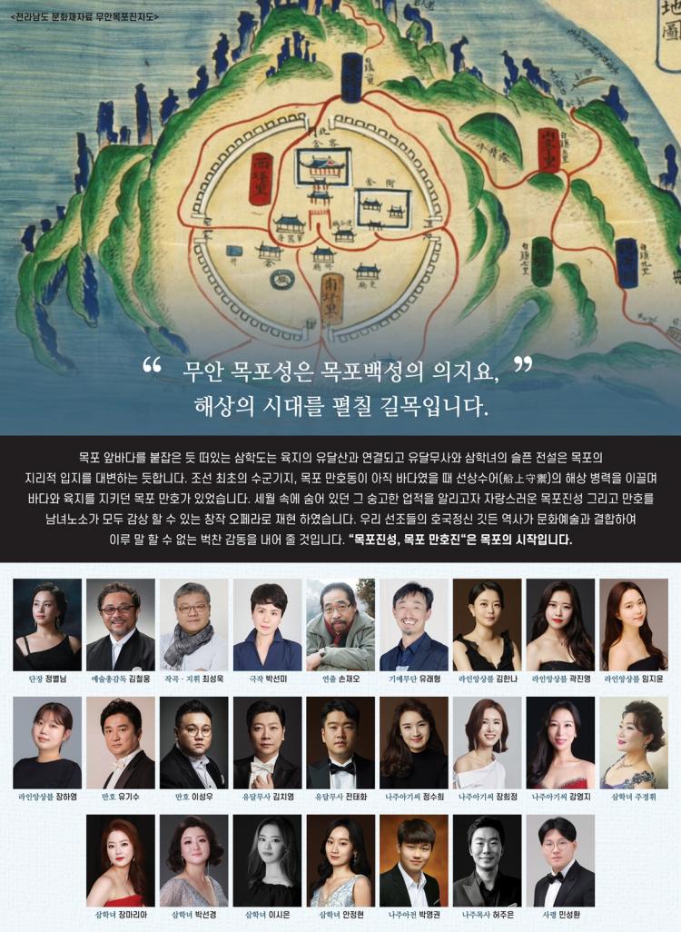 ±¹¸³¸ñÆ÷´ëÇб³(ÃÑÀå ¹Ú¹Î¼) ¿À´Â 11¿ù 2ÀÏ(¼ö)~3ÀÏ(¸ñ) ¿ÀÈÄ 7½Ã 30ºÐ ¸ñÆ÷½Ã ºÎÁֻ꿡 À§Ä¡ÇÑ ¸ñÆ÷½Ã¹Î¹®ÈüÀ°¼¾ÅÍ ´ë°ø¿¬Àå¿¡¼ âÀÛ ¿ÀÆä¶ó ¡®¸¸È£¡¯°¡ ¸·À» ¿Ã¸°´Ù°í ¹àÇû´Ù. âÀÛ ¿ÀÆä¶ó ¡®¸¸È£¡¯´Â ¿Ö±¸ÀÇ Ä§ÀÔÀÌ ÀæÀº ¸ñÆ÷ ¾Õ¹Ù´Ù¿¡ ¼±»ó¼ö¾î(àÏß¾áúåÝ)ÀÇ ¹æ¾î·Î¸¸ ÀÖ´ø ÇØ»óº´·ÂÀ» 1502³â Á¶¼± ¿¬»ê±º 8³â¿¡ Áø¼ºÃàÁ¶¸¦ ÀÌ·ç¸é¼ Á¶¼± ÃÖÃÊÀÇ ¼ö±º±âÁö¸¦ ¼³Ä¡ÇÏ´Â ¿ª»çÀû »ç½ÇÀ» ´ã°í ÀÖ´Ù. Áö¿ªÀÇ ¼³È¿Í Àι° À¯ÀûÀ» º´ÇÕÇÏ¿© ¸ñÆ÷¸¸ÀÇ »ö並 È®¿¬È÷ µå·¯³»´Â ÀÌ ÀÛǰÀº ¿ì¸® Áö¿ªÀÇ À½¾Ç°¡¸¦ ºñ·ÔÇÑ ¿¹¼ú°¡µéÀ» ÃÑ ¸Á¶óÇÏ°í ´ëÁß¿¡°Ô µè±â ÁÁÀº Ŭ¸®½ÄÀÇ ¸é¸ð¸¦ º¸À̰íÀÚ ÇÑ´Ù.