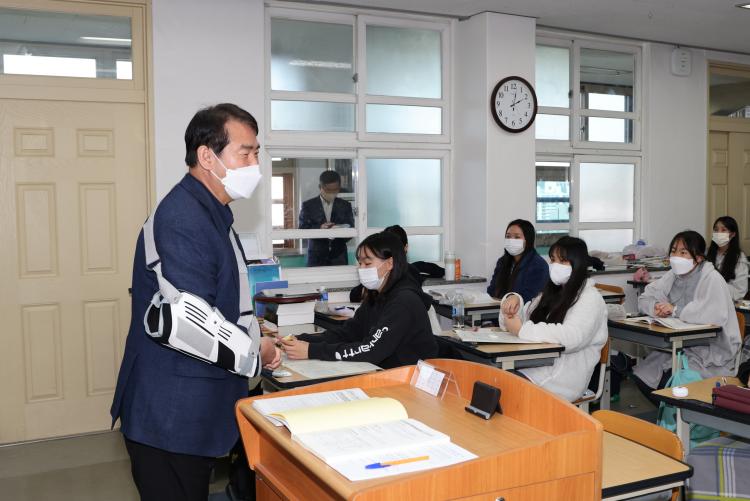 ÀÌÁ¤¼± ±³À°°¨Àº 9ÀÏ ¼ö´É ¸¶¹«¸®¿¡ ¹ÚÂ÷¸¦ °¡Çϰí ÀÖ´Â ¼öÇè»ýµéÀ» °Ý·ÁÇϱâ À§ÇØ ¼³¿ù¿©ÀÚ°íµîÇб³¸¦ ¹æ¹®Çß´Ù.
