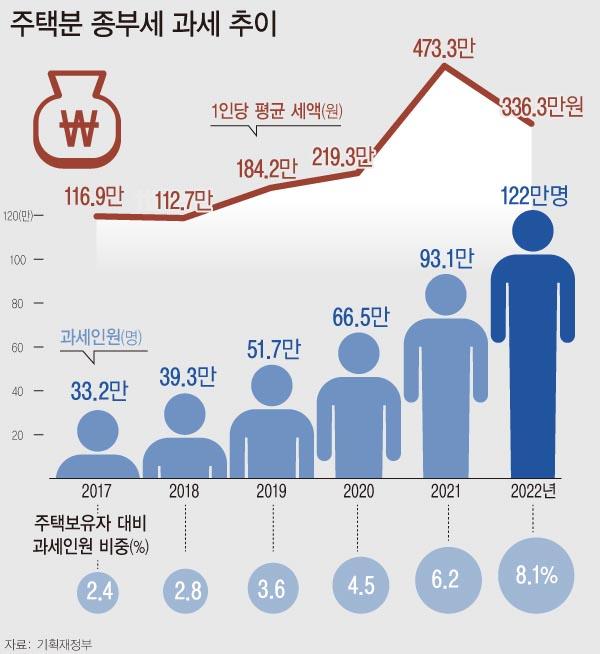 28ÀÏ Á¤ºÎ¿Í ±¹È¸ µî¿¡ µû¸£¸é ¿ÃÇØ Á¾ºÎ¼¼(ÁÖÅá¤ÅäÁö) °ú¼¼ ÀοøÀº 130¸¸7489¸íÀÌ´Ù. ÀÌ °¡¿îµ¥ ÁÖÅúÐÀº 121¸¸9849¸íÀ¸·Î ÀÛ³â(93¸¸1484¸í)º¸´Ù 28¸¸ ¸í ³Ñ°Ô ´Ã¾ú´Ù. Àü±¹ ÁÖÅà ¼ÒÀ¯ÀÚÀÇ 8.1%¿¡ ´ÞÇÑ´Ù. 5³â ÀüÀÎ 2017³â ¸¸ ÇØµµ ÇØ´ç ºñÀ²Àº 2.4%¿¡ ºÒ°úÇß´Ù.