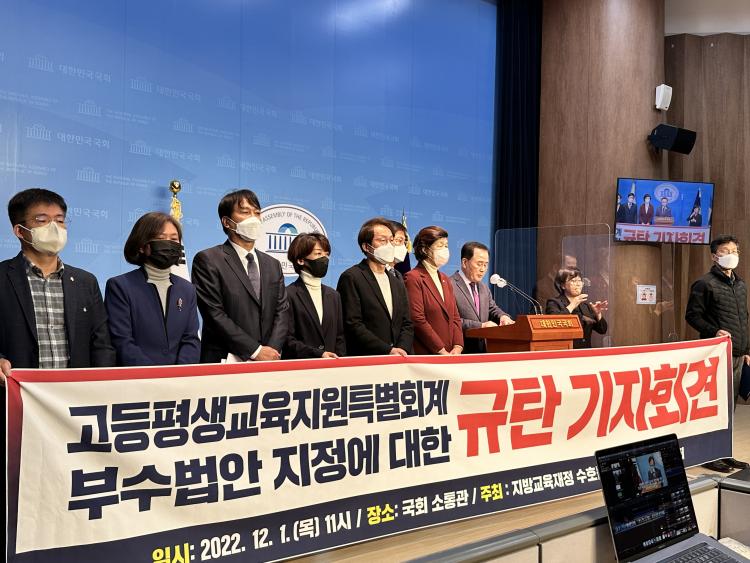 ±³¼ö³ëÁ¶´Â À̳¯ º°µµ ¼º¸íÀ» ³» ¡°(°íƯȸ°è´Â) ÃÊ¡¤Áßµî ±³À°Àº ¹°·Ð °íµî±³À°¿¡ ´ëÇØ¼µµ ÀçÁ¤À» Àý´ë·Î ´Ã¸®Áö ¾Ê°Ú´Ù´Â ±âÀçºÎÀÇ Æí¹ýÀû ¡®¿¹»êȯ»ó¡¯ ¸¸µé±â¡±¶ó¸ç ¡°(ºÎ¼ö¹ý¾È ÁöÁ¤Àº) ±³À° ÁÖüµéÀÇ ¶æ¿¡µµ ¹ÝÇÏ´Â ÀÏ¡±À̶ó°í ÁÖÀåÇß´Ù.