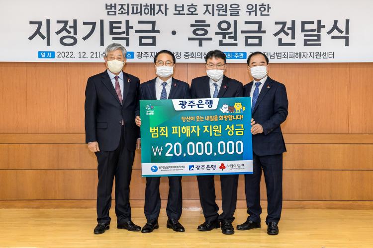 ±¤ÁÖÀºÇà(ÀºÇàÀå ¼ÛÁ¾¿í)Àº Áö³ 21ÀÏ ±¤ÁÖÁö¹æ°ËÂûû¿¡¼ ±¤ÁÖÀü³²¹üÁËÇÇÇØÀÚÁö¿ø¼¾ÅÍ¿¡ ¼º±Ý 2õ¸¸¿øÀ» Àü´ÞÇß´Ù°í ¹àÇû´Ù. À̹ø ¼º±Ý Àü´Þ½Ä¿¡´Â Á¶°èÁØ ±¤ÁÖÀºÇà ºÎÇàÀå°ú À̼ö±Ç ±¤ÁÖÁö¹æ°ËÂûû °Ë»çÀå, À±º¸¼± ±¤ÁÖÀü³²¹üÁËÇÇÇØÀÚÁö¿ø¼¾ÅÍ ÀÌ»çÀå, ¹Úöȫ ±¤ÁÖ»çȸº¹Áö°øµ¿¸ð±ÝȸÀå ¹× °ü°èÀÚ µîÀÌ Âü¼®ÇßÀ¸¸ç, Àü´ÞµÈ ¼º±ÝÀº ±¤ÁÖ»çȸº¹Áö°øµ¿¸ð±Ýȸ¸¦ ÅëÇØ ±¤ÁÖ¡¤Àü³² Áö¿ªÀÇ ¹üÁË ÇÇÇØÀÚ¸¦ À§ÇÑ ÈÄ¿ø±ÝÀ¸·Î »ç¿ëµÉ ¿¹Á¤ÀÌ´Ù.