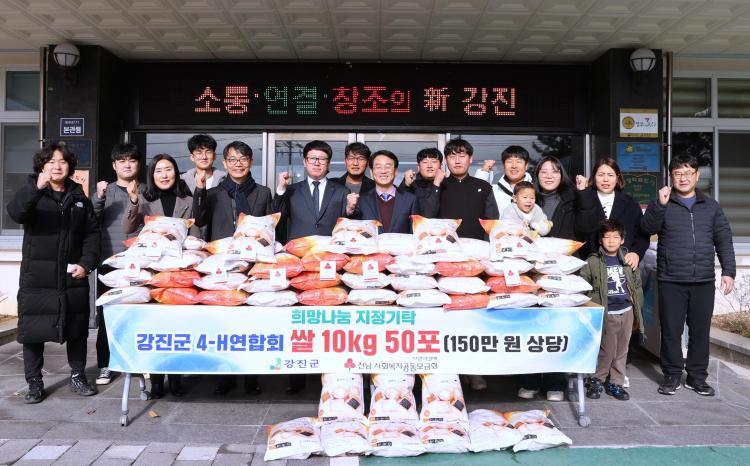 À̾î Áö³ 26ÀÏ, °Áø±º 4-H¿¬ÇÕȸ(ȸÀå À±ºÎÇö)°¡ Á÷Á¢ ³ó»çÁö¾î ¼öÈ®ÇÑ ½Ò 10kg 50Æ÷¸¦ ±âŹÇß´Ù.