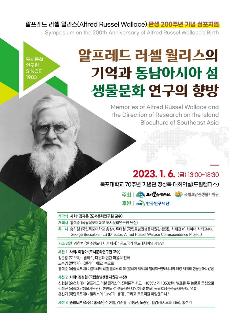 ±¹¸³¸ñÆ÷´ëÇб³(ÃÑÀå ¼ÛÇÏö) µµ¼¹®È¿¬±¸¿ø(¿øÀå È«¼®ÁØ)Àº ¼¼°èÀûÀÎ ÁøÈÇÐÀÚÀ̸ç, ¼¶ »ý¹°Áö¸®ÇÐÀÇ ¼±±¸ÀÚÀÎ ¾ËÇÁ·¹µå ·¯¼¿ ¿ù¸®½º(Alfred Russel Wallace)ÀÇ Åº»ý 200ÁÖ³âÀ» ¸ÂÀÌÇÏ¿© ±¹¸³È£³²±Ç»ý¹°ÀÚ¿ø°ú °øµ¿À¸·Î ¿À´Â 6ÀÏ ¿ÀÈÄ 1½Ã ¸ñÆ÷´ë 70ÁÖ³â±â³ä°ü Á¤»ó¹¬ ±¹Á¦ÄÁÆÛ·±½º·ë¿¡¼ ¡®¾ËÇÁ·¹µå ·¯¼¼ ¿ù¸®½ºÀÇ ±â¾ï°ú µ¿³²¾Æ½Ã¾Æ ¼¶»ý¹°¹®È ¿¬±¸ÀÇ Çâ¹æ¡¯ ÁÖÁ¦·Î ±â³ä ½ÉÆ÷Áö¾öÀ» °³ÃÖÇÑ´Ù°í ¹àÇû´Ù.