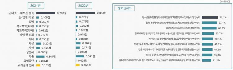 12ÀÏ Àü³²Ã»¼Ò³â¹Ì·¡Àç´Ü û¼Ò³â»ó´ãº¹Áö¼¾ÅͰ¡ ½Ç½ÃÇÑ ¡®2022³â û¼Ò³â ½ÇÅÂÁ¶»ç¡¯¿¡ µû¸£¸é û¼Ò³âµéÀº ÀÎÅͳݡ¤½º¸¶Æ®Æù Áßµ¶, °¡Ãâ, ÀÚ»ì, ÀÚÇØ ¼øÀ¸·Î À§±â¸¦ ´À³¢°í ÀÖ´Ù°í ´äº¯Çß´Ù.