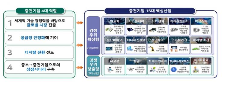 »ê¾÷ºÎ´Â Áß°ß±â¾÷ÀÌ º»°ÝÀûÀ¸·Î ¾çÀû¡¤ÁúÀûÀ¸·Î ¼ºÀåÇÒ ¼ö ÀÖµµ·Ï ¡®15´ë Çٽɻê¾÷¡¯À» Áß½ÉÀ¸·Î ±Û·Î¹ú ÁøÃâ°ú °ø±Þ¸Á ¾ÈÁ¤, µðÁöÅÐ Àüȯ¿¡ ÁýÁßÇÒ ¿¹Á¤ÀÌ´Ù. ÇâÈÄ 10³â °£ ¿¬±¸°³¹ß(R&D) ÃÑ »ç¾÷ºñ ±âÁØ ¾à 1Á¶5000¾ï¿øÀ» ÅõÀÔÇϰí, ¿À´Â 2027³â±îÁö 1Á¶¿ø ±Ô¸ðÀÇ Áß°ß±â¾÷ µµ¾à Áö¿øÆÝµå¸¦ Á¶¼ºÇØ Áß°ß±â¾÷ÀÇ ½Å»ç¾÷¡¤½Å±â¼úÀ» È®º¸¿¡ ÇÊ¿äÇÑ ÅõÀÚÀڱݵµ Áö¿øÇÑ´Ù.