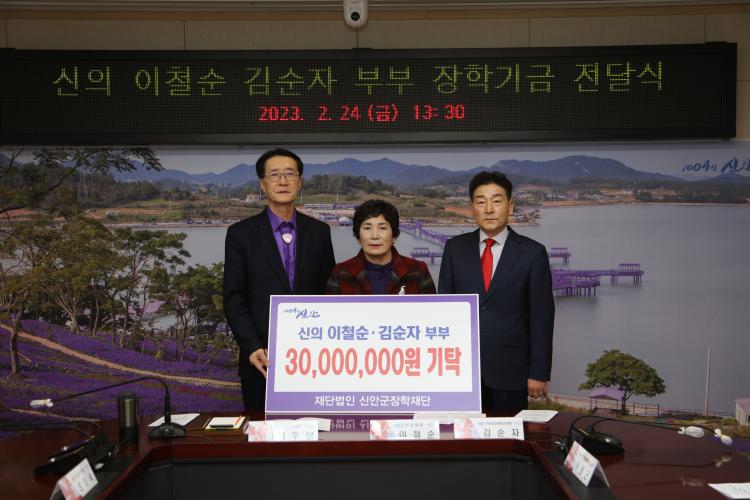 (Àç)½Å¾È±ºÀåÇÐÀç´Ü(ÀÌ»çÀå ¹Ú¿ì·®)Àº ½ÅÀǸé ÀÌö¼ø¡¤±è¼øÀÚ ºÎºÎ°¡ ½Å¾È±ºÃ»À» ¹æ¹®ÇØ 3õ¸¸¿øÀÇ ÀåÇбÝÀ» ¾àÁ¤Çß´Ù°í ¹àÇû´Ù.