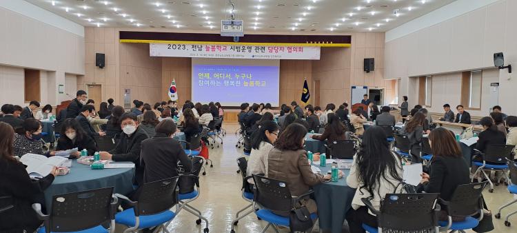 ½Ã¹ü¿î¿µ Çб³ ±³°¨°ú ÇàÁ¤½ÇÀå, ±³À°Áö¿øÃ» ´ã´çÀÚ µî 110¿© ¸íÀÌ Âü¼®ÇÑ °¡¿îµ¥ ¿¸° À̳¯ ÇùÀÇȸ¿¡¼ Âü¼®ÀÚµéÀº 2023. Àü³² ´Ãº½Çб³ ¿î¿µ ÇöȲ°ú ÇâÈÄ ÃßÁø °èȹÀ» °øÀ¯Çϰí Çб³¿Í ±³À°Áö¿øÃ» °£ Çù·Â ¹æ¾ÈÀ» ÇùÀÇÇß´Ù.