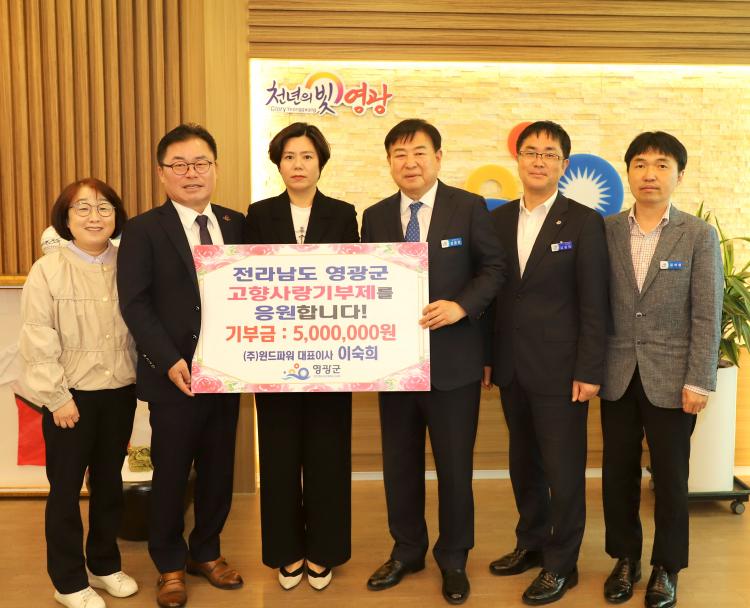 ÁÖ½Äȸ»ç À©µåÆÄ¿ö À̼÷Èñ ´ëÇ¥À̻簡 Áö³ 1ÀÏ ¿µ±¤±ºÃ» ±º¼ö½ÇÀ» ¹æ¹®ÇÏ¿© °íÇâ»ç¶û±âºÎ±Ý ÃÖ°í¾×ÀÎ 500¸¸ ¿øÀ» ±âºÎÇß´Ù.