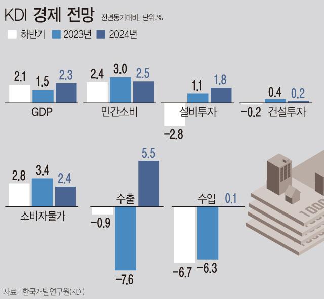 ½ÇÁ¦·Î KDI´Â Áö³ 11ÀÏ ¡®2023³â »ó¹Ý±â °æÁ¦Àü¸Á¡¯¿¡¼ ¹ÝµµÃ¼³ª Áß±¹ °æ±â ȸº¹ÀÌ ¿¹»óº¸´Ù ´õ ¾ÇÈÇÑ´Ù¸é 1.5% ¼ºÀå·ü ´Þ¼ºÀÌ ¾î·Æ°í, 1% Ãʹݴë±îÁö ³»·Á°¥ ¼ö ÀÖÀ½À» ½Ã»çÇß´Ù. »ó¹Ý±â ¼ºÀå·üÀ» 0.9%, ÇϹݱ⸦ 2.1%·Î ¿¹ÃøÇߴµ¥, Á¤ºÎ¿Í Çѱ¹ÀºÇà µî °ü°è ±â°ü Áß »ó¹Ý±â¸¦ 0%´ë·Î ¿¹»óÇÑ °Ç KDI°¡ óÀ½ÀÌ´Ù.