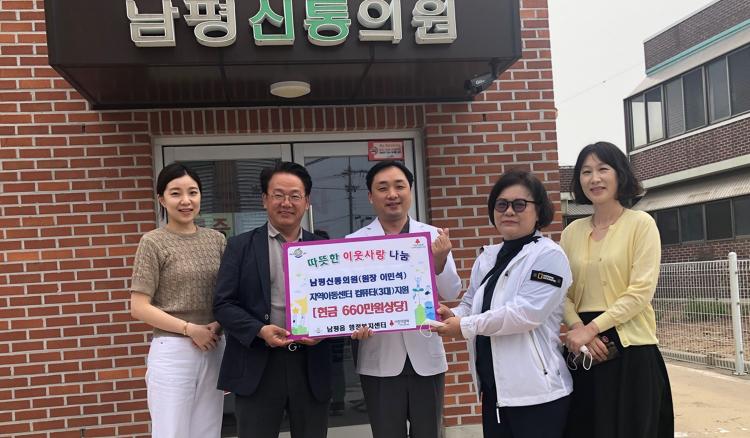 ³ªÁֽà ³²ÆòÀ¾ ¼ÒÀç ÇÑ ÀÇ¿ø(ÀÇ·á±â°ü)ÀÇ ²ÙÁØÇÑ ³ª´® Ȱµ¿ÀÌ Áö¿ª¹ÎÀ¸·ÎºÎÅÍ Äª¼ÛÀ» ¹Þ°í ÀÖ´Ù. ³ªÁֽà ³²ÆòÀ¾Àº ÃÖ±Ù ¡®³²Æò½ÅÅëÀÇ¿ø¡¯(¿øÀå À̹μ®)¿¡¼ 660¸¸¿ø »ó´ç ÄÄÇ»Å͸¦ ±âÅ¹ÇØ Áö¿ª¾Æµ¿¼¾ÅÍ 3°÷¿¡ ÈÄ¿øÇß´Ù°í 21ÀÏ ¹àÇû´Ù.
