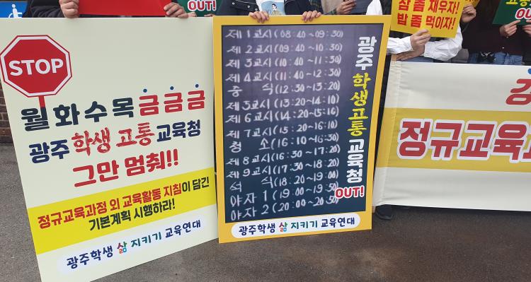 ½Ã±³À°Ã»Àº ÀÌ¿ÍÇÔ²² ¡®±¤ÁÖ Çлý »î Áö۱⠱³À°¿¬´ë¡¯°¡ ¿ä±¸Çϰí ÀÖ´Â ¡®Á¤±Ô±³À°°úÁ¤ ¿Ü ±³À°È°µ¿ ±âº»°èȹ¡¯ Àç½ÃÇà¿¡ ´ëÇØ¼´Â ¼ö¿ëÇÒ ¼ö ¾ø´Ù´Â ÀÔÀåÀÎ °ÍÀ¸·Î ¾Ë·ÁÁ³´Ù.
