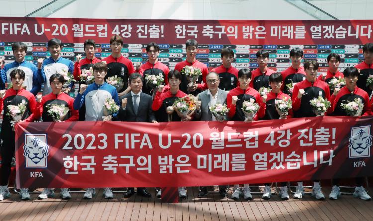 Á¦Ã౸¿¬¸Í(FIFA) 20¼¼ ÀÌÇÏ(U-20) ¿ùµåÄÅ 4° ÁøÃâÀ» ÀÌ·é ±èÀºÁßÈ£°¡ ÆÒµé ¾Õ¿¡¼ ȯÇÏ°Ô ¿ô¾ú´Ù.