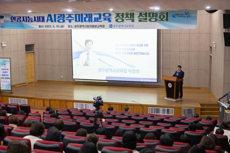 ±¤Áֽñ³À°Ã»ÀÌ Áö³ 16ÀÏ ±¤ÁÖâÀÇÀ¶ÇÕ±³À°¿ø¿¡¼ °¢±Þ Çб³ ±³(¿ø)°¨ ¹× ±³À°Àü¹®Á÷ 380¿© ¸íÀ» ´ë»óÀ¸·Î ¡®ÀΰøÁö´É ½Ã´ë AI±¤Á̷ֹ¡±³À° Á¤Ã¥ ¼³¸íȸ¡¯¸¦ °³ÃÖÇß´Ù.