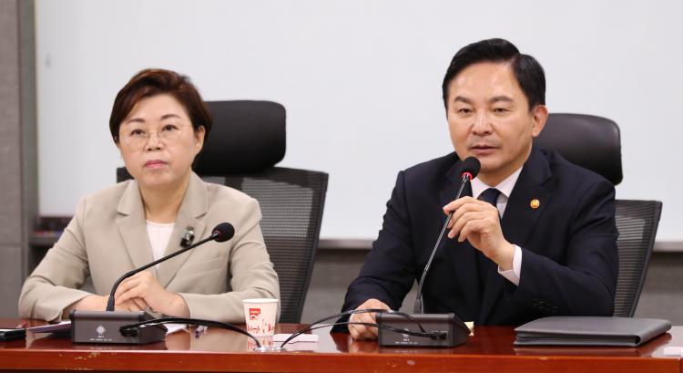 ¿øÈñ·æ ±¹Åä±³ÅëºÎ Àå°üÀº À̳¯ ¿ÀÀü ±¹È¸¿¡¼ ¿¸° ±ä±Þ ´çÁ¤ÇùÀÇȸ Á÷ÈÄ ºê¸®Çο¡¼ ¹ÎÁÖ´çÀÌ ±è°ÇÈñ ¿©»ç ¾Ç¸¶ ¸¸µé±â¸¦ Çϰí ÀÖ´Ù¸é¼ »ç¾÷ Áß´ÜÀ» ¼±¾ðÇß´Ù. »ç¾÷ Áß´ÜÀº º»ÀÎ °á´ÜÀ̶ó¸ç ´ëÅë·É½Ç°ú ³íÀÇ ¿©ºÎ´Â ÇÔ±¸Çß´Ù.