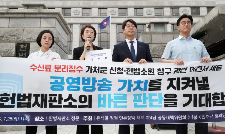 ´õºÒ¾î¹ÎÁִ硤Á¤ÀǴ硤±âº»¼Òµæ´ç¡¤Áøº¸´ç µî ¾ß(å¯)4´çÀÌ 25ÀÏ KBS ¼ö½Å·á¸¦ Àü±â¿ä±Ý¿¡¼ ºÐ¸®ÇØ Â¡¼öÇÏ´Â ¹æ¼Û¹ý °³Á¤¾ÈÀÇ ½ÃÇà·É È¿·Â Á¤Áö¸¦ Ã˱¸ÇÏ´Â Àǰ߼¸¦ Çå¹ýÀçÆÇ¼Ò¿¡ Á¦ÃâÇß´Ù.