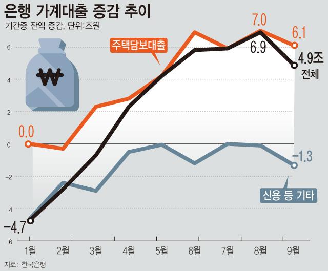 °¡°è´ëÃâ Áõ°¡´Â ÁÖ´ã´ë°¡ ÁÖµµÇß´Ù. 9¿ù ÁÖ´ã´ë´Â Àü¿ùº¸´Ù 6Á¶1000¾ï¿ø ´Ã¾î³ 833Á¶9000¾ï¿øÀ» ±â·ÏÇϸç 7°³¿ù ¿¬¼Ó »ó½ÂÀ» º¸¿´´Ù. ´Ù¸¸ Ãß¼® ¿¬ÈÞ·Î ÀºÇàµéÀÇ ¿µ¾÷Àϼö°¡ ÁÙ¸ç 8¿ù Áõ°¡Æø(7Á¶¿ø)º¸´Ù´Â Áõ°¡ÆøÀÌ Ãà¼ÒµÆ´Ù.