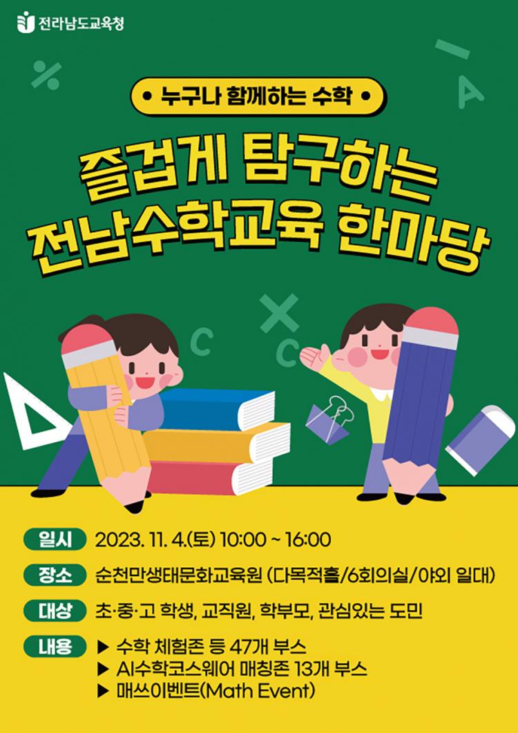 ¼öÇÐÀ» Áñ°Ì°Ô ¹è¿ï ¼ö ÀÖ´Â Çй®À¸·Î ´À³¢°Ô ÇÏ´Â ÃàÁ¦°¡ Àü³² ¼øÃµ¿¡¼ ÆîÃÄÁø´Ù.