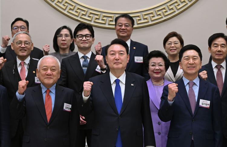 À± ´ëÅë·ÉÀº Áö³ 17ÀÏ ±¹¹ÎÅëÇÕÀ§¿øÈ¸ ¸¸ÂùÀ» ÁÖÀçÇß´Ù. ÀÌ ÀÚ¸®¿¡´Â ±èÇÑ±æ ±¹¹ÎÅëÇÕÀ§¿øÀå°ú ÅëÇÕÀ§¿øµé, ´ëÅë·É½Ç Âü¸ðÁø, ±è±âÇö ±¹¹ÎÀÇÈû ´ëÇ¥¿Í Àü³¯ »õ·Î ²Ù·ÁÁø ´ç ÁöµµºÎ, °¢ ºÎó Àå°ü µîÀÌ ÃÑÃ⵿Çß´Ù. ´çÁ¤´ë °íÀ§±Þ ÀλçµéÀÌ ¸ðµÎ ÇÑÀÚ¸® ¸ðÀÎ ÀÌ·ÊÀûÀÎ Àå¸éÀÌ´Ù. ±×¸¸Å À± ´ëÅë·ÉÀÌ ¡®À§±â Àǽġ¯°ú ¼â½ÅÀÇ Çʿ伺À» °ÇÏ°Ô ´À³¢°í ÀÖ´Ù´Â ¹æÁõÀÌ´Ù.