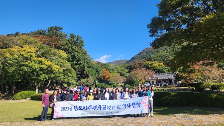 Àü¶ó³²µµ±³À°Ã»(±³À°°¨ ±è´ëÁß)ÀÌ 10¿ù 21ÀÏ À̼ø½Å À屺ÀÇ ¾óÀÌ ¼·Á ÀÖ´Â Áøµµ¿¡¼ ´Ù¹®È °¡Á·°ú ÇÔ²²ÇÏ´Â ¡®³²µµ¹ÎÁÖÆòȱæ(Àü³²ëù)¡¯À» ¿î¿µÇß´Ù.