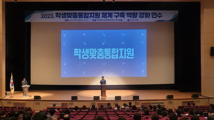 Àü¶ó³²µµ±³À°Ã»(±³À°°¨ ±è´ëÁß)ÀÌ 10¿ù 24ÀÏ ¿©¼ö¿¢½ºÆ÷ÄÁº¥¼Ç¼¾ÅÍ¿¡¼ Çлý¸ÂÃãÅëÇÕÁö¿ø »ç¾÷ ¿ª·® °È ¿¬¼ö¸¦ ¿°í, Çлý Áß½ÉÀÇ È¿°úÀû Áö¿ø ¹æ¾ÈÀ» ¸ð»öÇß´Ù.