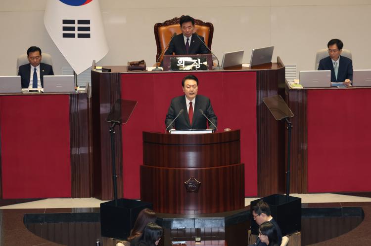 À±¼®¿ ´ëÅë·ÉÀº Áö³´Þ 31ÀÏ ±¹È¸ º»È¸ÀÇÀå¿¡¼ 657Á¶¿ø ±Ô¸ðÀÇ ³»³âµµ ¿¹»ê¾È¿¡ ´ëÇØ ½ÃÁ¤¿¬¼³À» ½Ç½ÃÇß´Ù. ÃëÀÓ ÈÄ µÎ ¹øÂ° ½ÃÁ¤¿¬¼³ÀÌ´Ù. À± ´ëÅë·ÉÀº À̳¯ ¿¬¼³¿¡¼ °ÇÀüÀçÁ¤ ±âÁ¶·Î § 2024³âµµ ¿¹»ê¾ÈÀ» ¼³¸íÇϰí ÁöÃâ Á¶Á¤À» ÅëÇØ ¾àÀÚ º¸È£, ¹Ì·¡ ¼ºÀå µ¿·Â È®º¸ ¹æ¾ÈÀ» ±¸ÃàÇß´Ù°í ¹àÇû´Ù.