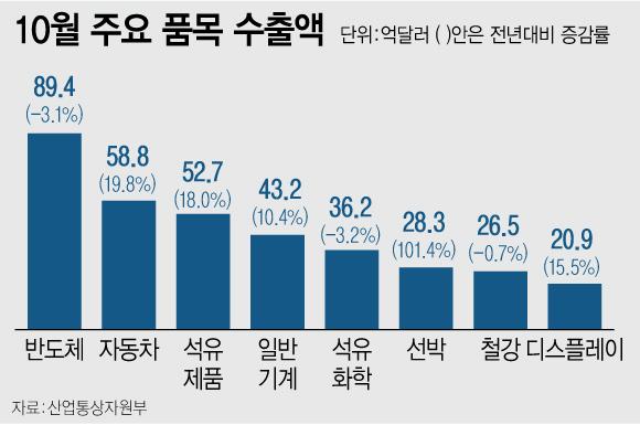 10¿ù ¼öÃâ(-4.4%¡æ5.1%)Àº ¹ÝµµÃ¼¸¦ ºñ·ÔÇÑ ´ëºÎºÐÀÇ Ç°¸ñ¿¡¼ ºÎÁøÀÌ ¿ÏÈÇß´Ù. ƯÈ÷ ¹Ì±¹À¸·ÎÀÇ ¼öÃâ(8.5%¡æ17.3%)ÀÌ ´ëÆø Áõ°¡Çß°í, Áß±¹ ¼öÃâ(-17.6%¡æ -9.5%)Àº ¿©ÀüÈ÷ ºÎÁøÇϳª °¨¼ÒÆøÀÌ Ãà¼ÒµÆ´Ù.