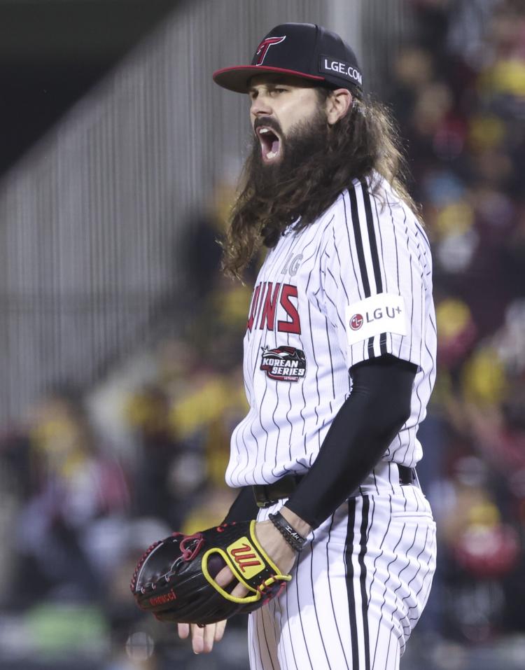 LG Æ®À©½º°¡ 29³â ¸¸¿¡ Çѱ¹½Ã¸®Áî(KS¡¤7Àü4¼±½ÂÁ¦) ¿ì½ÂÀ» ´«¾Õ¿¡ µÐ °¡¿îµ¥ ¿¡À̽º ÄÉÀ̽à Ä̸®°¡ Ãâ°ÝÇÑ´Ù.