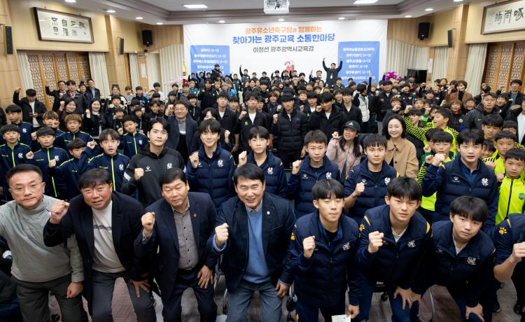 ±¤Áֽñ³À°Ã»Àº ÀÌÁ¤¼± ±³À°°¨ÀÌ ±¤ÁÖÁö¿ª 13°³ ÃÊ¡¤ÁßÇб³ À¯¼Ò³âÃ౸ÆÀ ¼±¼ö¡¤Çкθð¡¤ÁöµµÀÚ¿Í ¼ÒÅëÇѸ¶´çÀ» ÁøÇàÇß´Ù°í 5ÀÏ ¹àÇû´Ù.