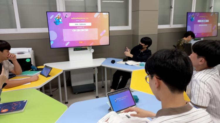 ¶Ç ±³½Ç Á¤¸é¿¡´Â ºöÇÁ·ÎÁ§ÅÍ¿Í ÈÀÌÆ®º¸µåÇü ÀüÀÚ Ä¥ÆÇÀÌ ¼³Ä¡µÇ¸ç ¸ðµÒº°·Î ½º¸¶Æ® TV°¡ °¢ 1´ë¾¿ ÃÑ 4´ë°¡ °®ÃçÁ® ÇÁ·ÎÁ§Æ® ¹ßÇ¥¿Í ÅäÀÇ¡¤Åä·Ð Ȱµ¿¿¡ Ȱ¿ëÇÒ ¼ö ÀÖµµ·Ï Çß´Ù.