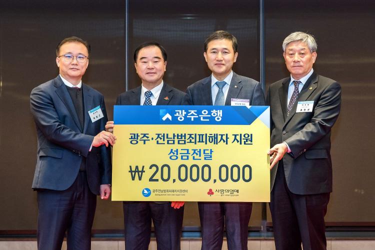 ±¤ÁÖÀºÇàÀº ¿¬¸»À» ¸Â¾Æ ¹üÁË ÇÇÇØ·Î °íÅëÀ» °Þ°í ÀÖ´Â ÇÇÇØÀÚµéÀ» Áö¿øÇϱâ À§ÇØ ±¤ÁÖÀü³²¹üÁËÇÇÇØÀÚÁö¿ø¼¾ÅÍ¿¡ ¼º±Ý 2000¸¸¿øÀ» Àü´ÞÇß´Ù°í 26ÀÏ ¹àÇû´Ù.