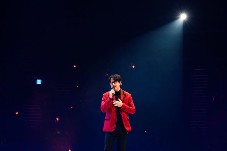 ¿ÀÇÁ´× ¿µ»ó¿¡ LED·Î ä¿öÁø ÃÊ´ëÇü ¿øÇü ¼¼Æ® ¹«´ë¿Í õÀå¿¡ ¼³Ä¡ÇÑ 8°³ÀÇ ´ëÇü LED ȸ鿡 ¹è¿ì Á¤¿ì¼ºÀÌ ±ô¦ µîÀåÇØ ¡®³ë·¡¿Í °ø¿¬¿¡ Áø½ÉÀÎ ³²ÀÚ¡¯¶ó´Â ÀçÄ¡ ³ÑÄ¡´Â ¸àÆ®·Î ¼º½Ã°æÀ» ¼Ò°³Çß´Ù. ½´Æ® Â÷¸²À¸·Î 2Ãþ °´¼®¿¡¼ ±ô¦ µîÀåÇÑ ¼º½Ã°æÀº ³ë·¡ ¡®ÆËÄÜ¡¯À¸·Î °ø¿¬ÀÇ Æ÷¹®À» ¿¾ú´Ù.