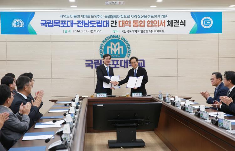 ¸ñÆ÷´ëÇб³(ÃÑÀå ¼ÛÇÏö)¿Í Àü³²µµ¸³´ëÇб³(ÃÑÀå Á¶¸í·¡)´Â 11ÀÏ ¿ÀÀü 11½Ã ¸ñÆ÷´ë ½º¸¶Æ®È¸Àǽǿ¡¼ ¾ç ´ëÇÐ ÃÑÀå ¹× °ü°èÀÚ µîÀÌ Âü¿©ÇÑ °¡¿îµ¥ ¡®´ëÇÐÅëÇÕ ÃßÁøÀ» À§ÇÑ ¾÷¹«Çù¾à¡¯À» ü°áÇß´Ù.