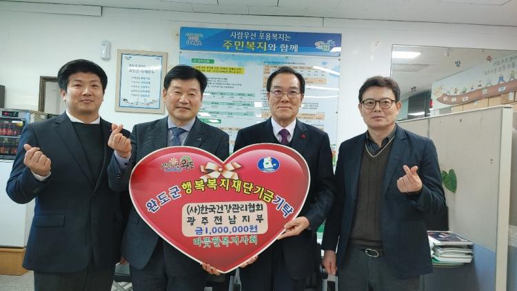 Çѱ¹°Ç°°ü¸®Çùȸ ±¤ÁÖÀü³²ÁöºÎ´Â 25ÀÏ ¿Ïµµ±ºÃ»À» ¹æ¹®ÇÏ¿© Ãë¾à°èÃþÀ» À§ÇÑ ¿¬¸» »ç¶ûÀÇ ¼º±ÝÀ» Àü´ÞÇß´Ù.