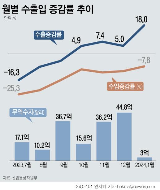 1ÀÏ »ê¾÷Åë»óÀÚ¿øºÎ°¡ ¹ßÇ¥ÇÑ ¡®1¿ù ¼öÃâÀÔ µ¿Ç⡯¿¡ µû¸£¸é ¼öÃâÀº 1³â Àüº¸´Ù 18.0% Áõ°¡ÇÑ 546¾ï9000¸¸ ´Þ·¯(73Á¶111¾ï¿ø)¸¦ ±â·ÏÇß´Ù.
