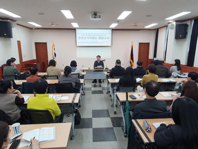 ±¤ÁÖ±¤¿ª½Ã¼±°Å°ü¸®À§¿øÈ¸(ÀÌÇÏ ±¤Áֽü±°üÀ§)´Â 4¿ù 10ÀÏ ½Ç½ÃÇÏ´Â Á¦22´ë ±¹È¸ÀÇ¿ø¼±°Å¸¦ ¾ÕµÎ°í ½Ã ¹× 5°³ ±¸¼±°üÀ§¿¡¼ ¿î¿µÇÏ´Â 65¸íÀÇ °øÁ¤¼±°ÅÁö¿ø´ÜÀÇ Á÷¹« ¹× ÇöÀå´ëÀÀ´É·Â °È¸¦ À§ÇØ 14ÀÏ ±¤Áֽü±°üÀ§ 4Ãþ ´ëȸÀǽǿ¡¼ ÅëÇÕ±³À°À» ½Ç½ÃÇß´Ù°í ¹àÇû´Ù.