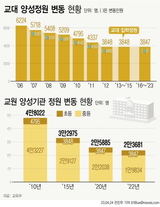 Á¤ºÎ´Â ÇзÉÀα¸ °¨¼Ò·Î ´õ´Â ±³´ë Á¤¿øÀ» ¹æÄ¡Çؼ´Â ¾È µÈ´Ù°í º¸°í ÀÖ´Ù. °ü°èºÎó ÇÕÀÇ·Î Áö³ÇØ 4¿ù ÁßÀå±â ±³¿ø¼ö±Þ°èȹÀ» ³»³õ°í, ½Å±Ô Ãʵ»ç ä¿ë ±Ô¸ð¸¦ ´ç½Ã 3561¸í¿¡¼ 2027³â 2600~2900¸í ¼öÁØÀ¸·Î ÃÖ´ë 27%±îÁö ÁÙÀÌ´Â ¹æ¾ÈÀ» ÃßÁøÇϱâ·Î Çß´Ù.