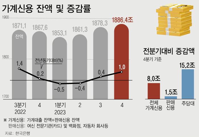 ÇÑÀºÀÌ 20ÀÏ ¹ßÇ¥ÇÑ ¡®2023³â 4ºÐ±â °¡°è½Å¿ë(ÀáÁ¤)¡¯¿¡ µû¸£¸é À۳⠸» ±ÝÀ¶±Ç Àüü °¡°è´ëÃâ°ú Ä«µå»ç, ¹éÈÁ¡ µî ÆÇ¸Å½Å¿ëÀ» ´õÇÑ °¡°è½Å¿ë Àܾ×Àº 1886Á¶4000¾ï¿øÀ¸·Î Áý°èµÆ´Ù.