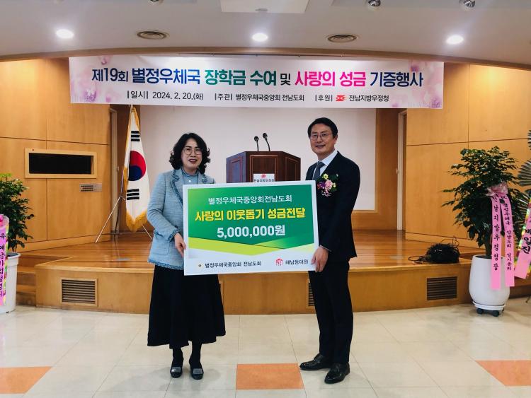 º°Á¤¿ìü±¹Áß¾Óȸ Àü³²µµÈ¸(µµÈ¸Àå À±Ã¶¼º)´Â Áö³ 20ÀÏ Àü³²Áö¹æ¿ìÁ¤Ã» ´ëȸÀǽǿ¡¼ ±¤ÁÖÀü³²Áö¿ª º°Á¤¿ìü±¹ Á÷¿ø µî 150¿© ¸íÀÌ Âü¼®ÇÑ °¡¿îµ¥ ¡®Á¦19ȸ º°Á¤¿ìü±¹ ÀåÇÐ±Ý ¼ö¿© ¹× »ç¶ûÀÇ ¼º±Ý Àü´Þ½Ä¡¯À» °®°í ¾î·Á¿î °¡Á¤È¯°æ¿¡¼µµ ¸ð¹üÀûÀ¸·Î Çб³»ýȰÀ» Çϴ û¼Ò³â 20¿© ¸í¿¡°Ô 1500¸¸ ¿øÀÇ ÀåÇбÝÀ» Àü´ÞÇß´Ù.