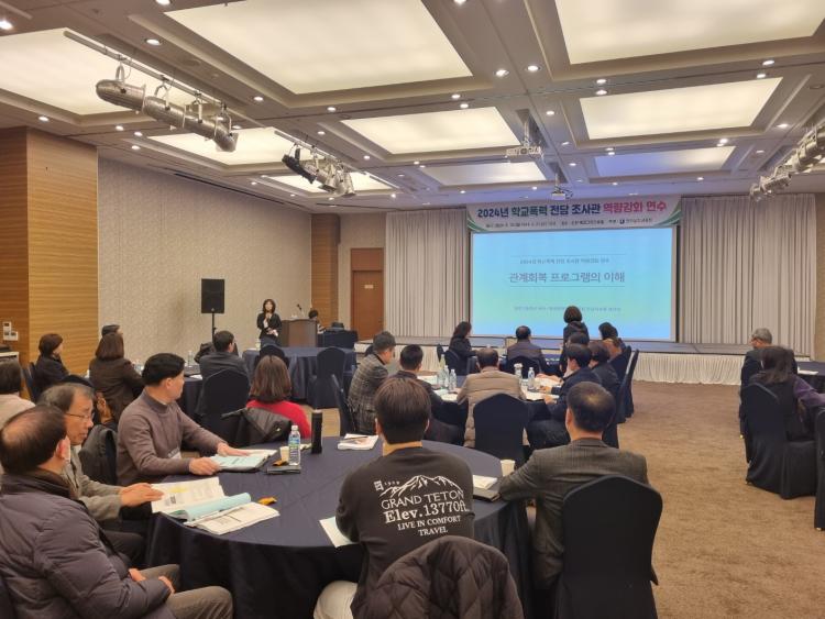 Àü³²±³À°Ã»Àº 19~21ÀÏ ¼øÃµ ¿¡ÄÚ±×¶óµåÈ£ÅÚ, 21~23ÀÏ ¿µ¾Ï È£ÅÚÇö´ë¹ÙÀ̶óÇÑ¿¡¼ ¡®Çб³Æø·Â Àü´ã Á¶»ç°ü ¿ª·® °È ¿¬¼ö¡¯¸¦ ¿°í, Çб³Æø·Â »ç¾È ¹ß»ý ½Ã ½Å¼ÓÇϰí Àü¹®ÀûÀΠó¸® ÀýÂ÷¿¡ ´ëÇØ ³íÀÇÇÑ´Ù.