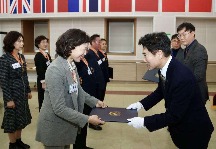 ±è´ëÁß ±³À°°¨Àº ¿µ¿¹·Î¿î ÈÆ¡¤Æ÷ÀåÀ» ¹ÞÀº ¼ö»óÀÚ¿Í °¡Á·µé¿¡°Ô ±× µ¿¾ÈÀÇ Çå½Å°ú ³ë°í¿¡ Á¸°æ°ú °¨»çÀÇ ¸¶À½À» ÀüÇß´Ù.