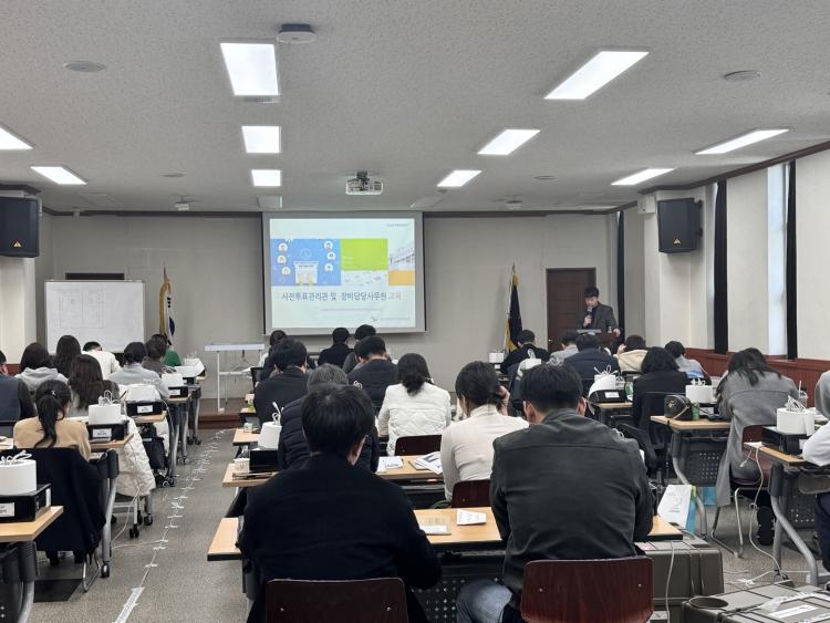 ±³À°Àº »çÀüÅõÇ¥°ü¸® ÀýÂ÷¿Í À¯ÀÇ»çÇ×, ÅëÇÕ¸íºÎ½Ã½ºÅÛ¡¤»çÀüÅõÇ¥Àåºñ ¿î¿ë ±³À° ¹× ½Ç½ÀÀ» ³»¿ëÀ¸·Î ¸ÅÀÏ °¢ ±¸¼±°üÀ§ º° »çÀüÅõÇ¥°ü¸®°ü°ú Àåºñ´ã´ç»ç¹«¿øÀ» ´ë»óÀ¸·Î ÁøÇàµÆ´Ù. ±¤Áֽü±°üÀ§ °ü°èÀÚ´Â ¡°Æ¯È÷ Á¤È®ÇÑ Åõ¡¤°³Ç¥ °ü¸®¸¦ À§ÇØ °ü¸® ÀηÂÀÇ Àü¹®¼º °È¿¡ ÁýÁßÇϰí ÀÖ´Ù¡±¸ç ¡°Ã¶ÀúÈ÷ ÁغñÇÏ¿© Á¦22´ë ±¹È¸ÀÇ¿ø¼±°Å°¡ ¼º°øÀûÀ¸·Î ÁøÇàµÉ ¼ö ÀÖµµ·Ï ÃÖ¼±À» ´ÙÇϰڴ١±°í ÀüÇß´Ù.