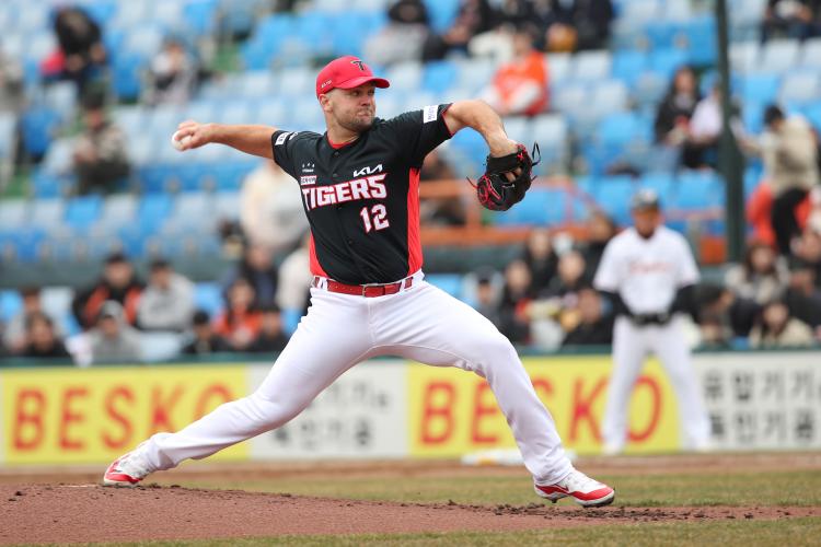 ÇÁ·Î¾ß±¸ KIA ŸÀ̰ÅÁîÀÇ »õ ¿Ü±¹ÀÎ Åõ¼ö Àª Å©·Î¿ì(30)°¡ KBO¸®±× ½Ã¹ü°æ±â µ¥ºßÀü¿¡¼ ¾ÐµµÀûÀÎ Åõ±¸ ³»¿ëÀ» ¼±º¸¿´´Ù.