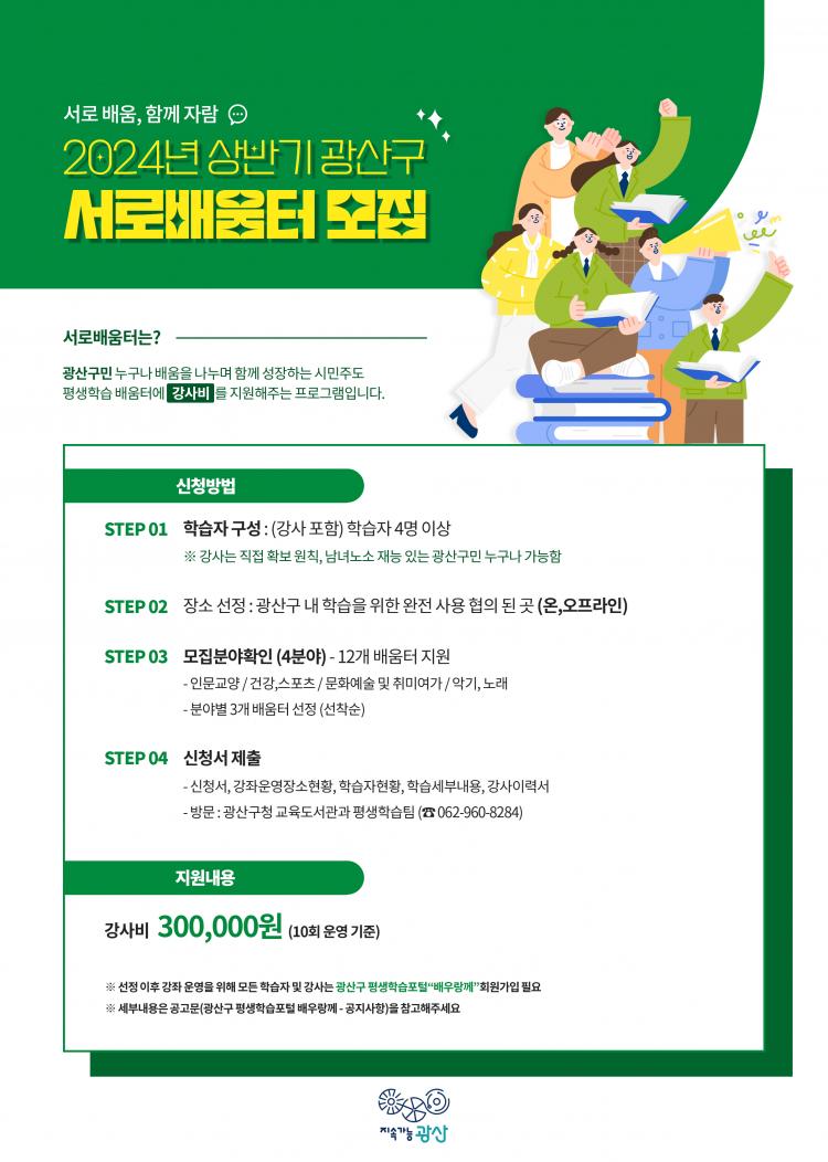 ±¤ÁÖ ±¤»ê±¸(±¸Ã»Àå ¹Úº´±Ô)´Â ´©±¸³ª ¹è¿òÀ» ³ª´©¸ç ÇÔ²² ¼ºÀåÇÏ´Â ½Ã¹ÎÁÖµµÇü Æò»ýÇнÀ¹®È È®»êÀ» À§ÇØ 11¿ù±îÁö ±¸¹ÎÀ» ´ë»óÀ¸·Î ¡®¼·Î¹è¿òÅÍ¡¯¸¦ ¿î¿µÇÑ´Ù°í ¹àÇû´Ù.