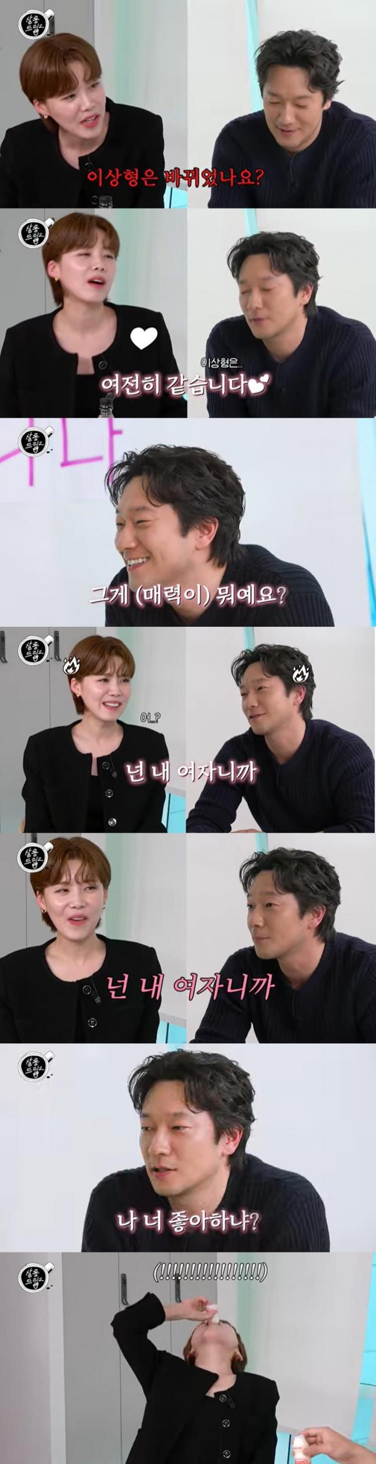 ¾Æ¿ï·¯ ¿µÈ ¡®³» ¸Ó¸´¼ÓÀÇ Áö¿ì°³¡¯ÀÇ ¸í´ë»ç ¡®À̰Џ¶½Ã¸é ³ª¶û »ç±Í´Â°Å´Ù¡¯ÀÇ ¸í´ë»ç¸¦ µû¶óÇϱ⵵ Çß´Ù. ¼Õ¼®±¸´Â ¡°À̰Џ¶½Ã¸é ³ª¶û »ç±Í´Â°Å´Ù¡±¶ó°í Àåµµ¿¬À» ¹Ù¶óº¸¸ç ¸»Çß°í, Àåµµ¿¬Àº ¡°¾È ¸¶½Ã¸é?¡±À̶ó°í µÇ¹°¾ú´Ù. ÀÌ¿¡ ¼Õ¼®±¸´Â ¡°¸¶½Ã°Ô µÉ°É?¡±À̶ó°í ´ë´äÇß´Ù.