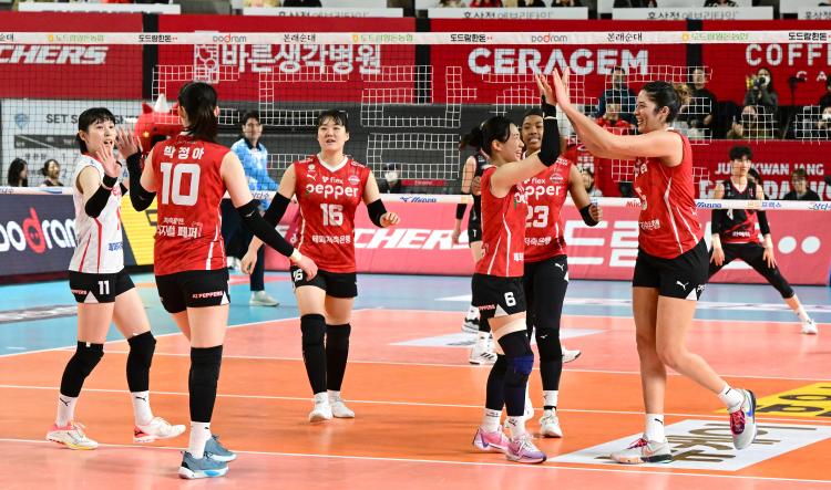 ÆäÆÛÀúÃàÀºÇàÀº ´ëÀü Ãæ¹«Ã¼À°°ü¿¡¼ ÆîÃÄÁø ¿©ÀںΠÁ¤°üÀå°úÀÇ °æ±â¿¡¼ 3-1(25-17 25-21 14-25 25-17)·Î ½Â¸®Çß´Ù.